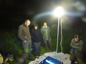 la capture (par un participant muni de l’autorisation nécessaire) et la détection ultra sonore. Le second groupe a quant à lui réalisé une chasse de nuit (technique qui vise à attirer les papillons à l’aide d’une source lumineuse) à Parnes afin d’inventorier les papillons nocturnes.