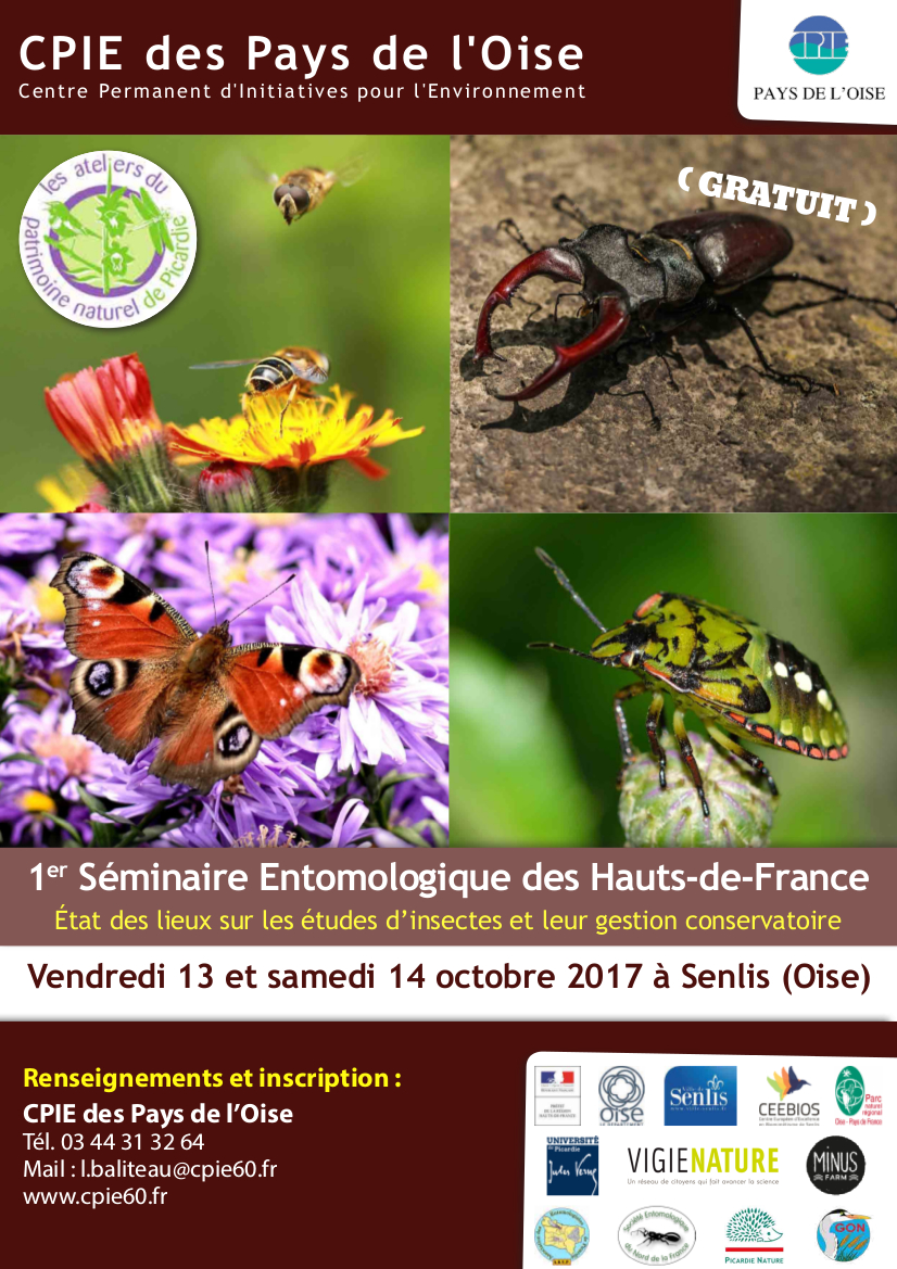 Venez assister nombreux au 1er Séminaire Entomologique des Hauts-de-France organisé par le CPIE des Pays de l’Oise les 13 au 14 octobre à Senlis en partenariat avec l’Association des Entomologistes de Picardie (ADEP), le Groupe ornithologique et naturaliste du Nord - Pas-de-Calais (GON), Picardie Nature et la Société des Entomologistes du Nord de la France (SENF).